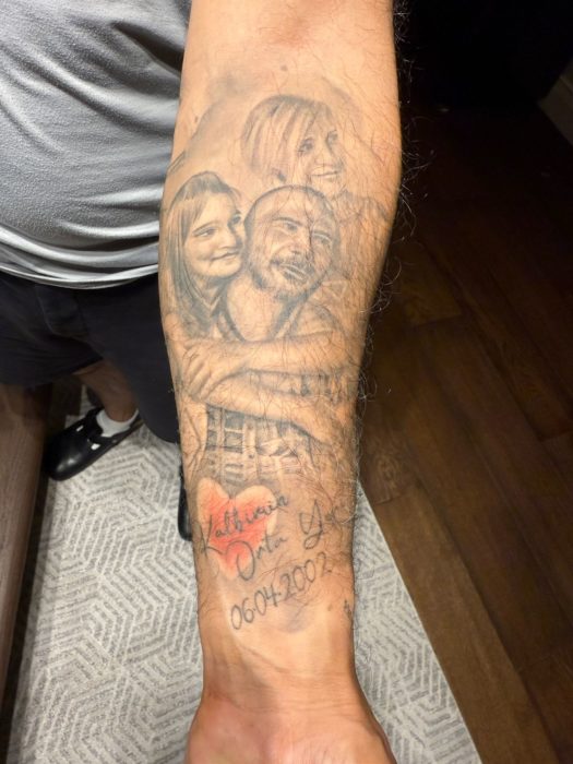 Bakıyorum. 06.04.2002 yazıyor. Ceren Hanım ile sevgili oldukları gün bu. O günden sonra “ailem” kelimesinin karşılığı bu tarih olmuş. Üzerine derisine Lalin ve Ceren ile en sevdikleri fotoğrafı kazıtmış. “Kalbimin orta yeri” notunu düşmüş.