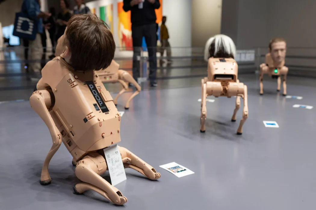 Robota benzeyen ama kafası Andy Warhol’dan Jeff Bezos’a kadar ünlü yüzlerle modellenmiş bu “köpekler”, teknolojiyle pop kültürünün tuhaf kesişimine güzel bir örnek. (Getty Images)